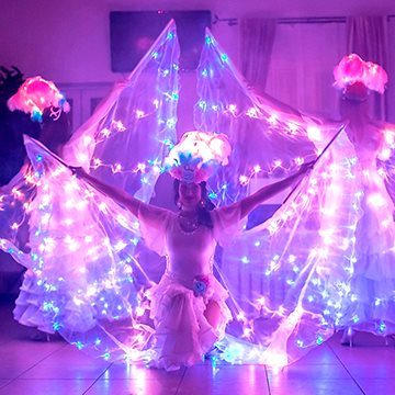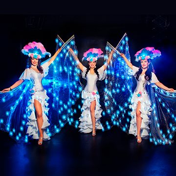 Новый год — волшебный праздник, который не обходится без волшебства. Для встречи нового года, новогодней ночи и предновогодних корпоративов, мы приготовили волшебный световой новогодний номер «Зимняя сказка» со светодиодными крыльями. Танцевальный номер «Зимняя сказка» подходит, как для подтанцовки под живой вокал, так и как отдельный завораживающий новогодний светодиодный номер. Почувствуйте новогодние чудеса вместе с нами.